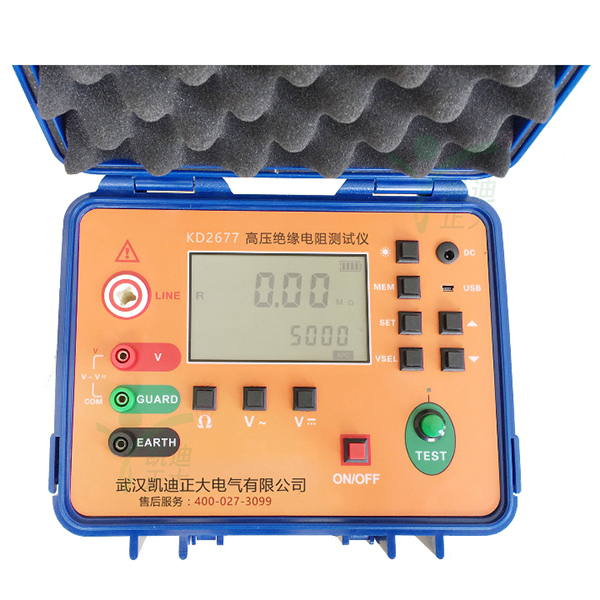 KD2677高壓絕緣兆歐表又名高壓絕緣電阻表,用于絕緣電阻的測試。本儀表具有大屏幕LCD灰白背光顯示、數據存儲、數據查閱、報警、自動放電、充電、自動關機等功能。同時還具備測量直流電壓交流電壓吸收比和極化指數功能。整機美觀高檔,量程寬廣,分辨率高,操作便捷,攜帶方便,準確、可靠、性能穩(wěn)定,輸出功率大,抗干擾能力強。
