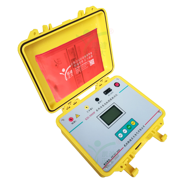 KD5000F水冷發(fā)電機(jī)絕緣電阻測(cè)試儀專用于水內(nèi)冷發(fā)電機(jī)的絕緣測(cè)量試驗(yàn),同時(shí)也可用于試驗(yàn)室或現(xiàn)場(chǎng)做其它材料的絕緣測(cè)試,輸出電流大于40mA。輸出電壓最大5000V,可測(cè)高達(dá)100GΩ的絕緣電阻。內(nèi)含高精度微電流測(cè)量系統(tǒng)、數(shù)字升壓系統(tǒng)。只需要用一條高壓線和一條信號(hào)線連接試品即可測(cè)量。測(cè)量自動(dòng)進(jìn)行,結(jié)果由大屏幕液晶顯示,并將結(jié)果進(jìn)行存儲(chǔ)。不需對(duì)水極化電勢(shì)進(jìn)行補(bǔ)償調(diào)節(jié),機(jī)座與匯水管間的電阻小至3kΩ,也可保證測(cè)量準(zhǔn)確度,水阻大于80kΩ時(shí),可保證測(cè)試準(zhǔn)確度。并自動(dòng)計(jì)算吸收比(R60S/R15S)和極化指數(shù)(R10min/R1min),自動(dòng)儲(chǔ)存15秒、1分鐘、10分鐘的絕緣電阻值。也可用于變壓器等其他電力設(shè)備的絕緣電阻測(cè)試。