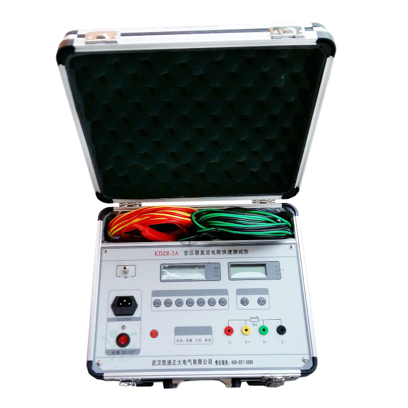 KDZR-3A直流電阻測(cè)試儀(微歐計(jì))是取代直流單、雙臂電橋的高精度換代產(chǎn)品。儀器采用了先進(jìn)的開(kāi)關(guān)電源技術(shù),由四位半LCD液晶顯示測(cè)量結(jié)果。克服了其它同類產(chǎn)品由LED顯示值在陽(yáng)光下不便讀數(shù)的缺點(diǎn),同時(shí)具備了自動(dòng)消弧功能。本儀器具有測(cè)速快、精度高、顯示直觀、抗干擾能力強(qiáng)、體積小、耗電省、測(cè)試數(shù)據(jù)穩(wěn)定可靠、不受人為因素影響等優(yōu)點(diǎn)。是測(cè)量電力變壓器及大型電機(jī)等各種感性負(fù)載電阻及低壓開(kāi)關(guān)接觸電阻、電線電纜或焊縫接口電阻的理想儀器,其測(cè)量速度比電橋快一百多倍。儀器內(nèi)裝可充電電池組(12V),交、直流兩用,便于現(xiàn)場(chǎng)及野外測(cè)試。