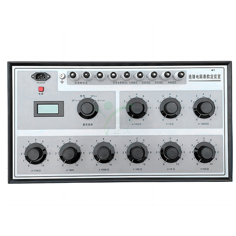 絕緣電阻表檢定裝置是依據(jù)JJG1005—2019《電子式絕緣電阻表檢定規(guī)程》、JJG622—1997《絕緣電阻表(兆歐表)檢定規(guī)程》的有關(guān)檢定項(xiàng)目要求,并參考電力行業(yè)標(biāo)準(zhǔn)DL/T845.1—2004《電子式絕緣電阻表》通用技術(shù)條件中的相關(guān)內(nèi)容設(shè)計(jì)制造的專用設(shè)備,用于檢定電子式絕緣電阻表的示值誤差、跌落電壓(Ud)。與本公司生產(chǎn)的恒速器(KDCY3型)配合可檢定指針式兆歐表的示值誤差、開路電壓(Uk)、中值電壓(Uz)、峰值電壓(Uf)。具有結(jié)構(gòu)緊湊、性能穩(wěn)定、使用方便等特點(diǎn)。是各工礦、企事業(yè)單位用來檢定各類絕緣電阻表的設(shè)備。