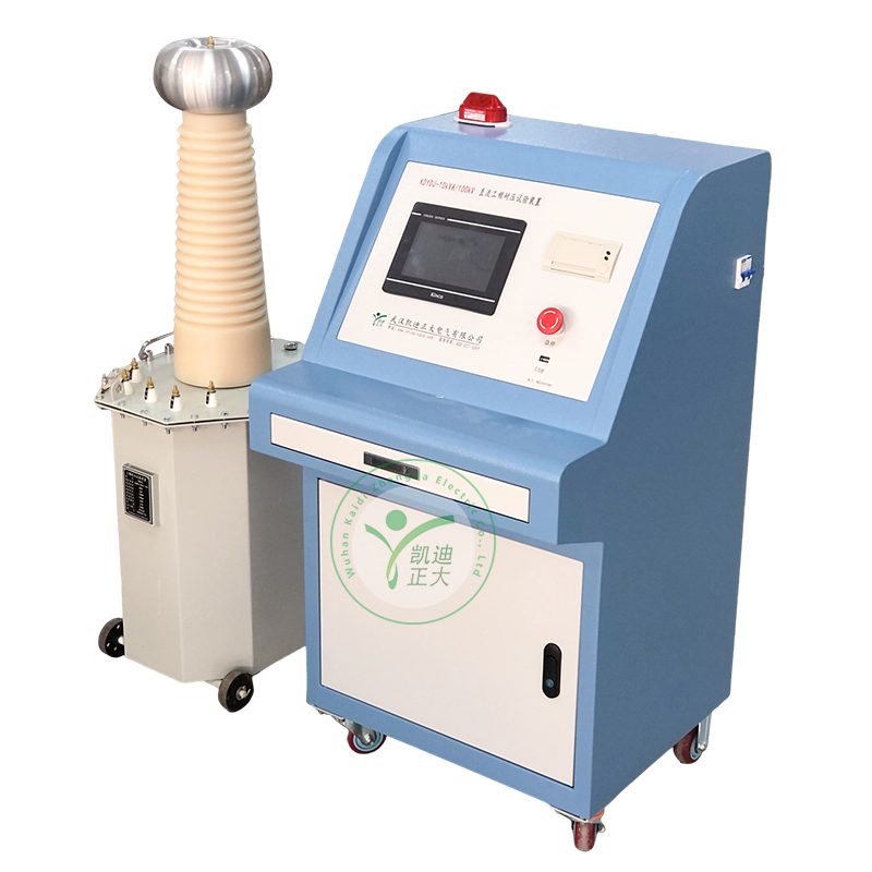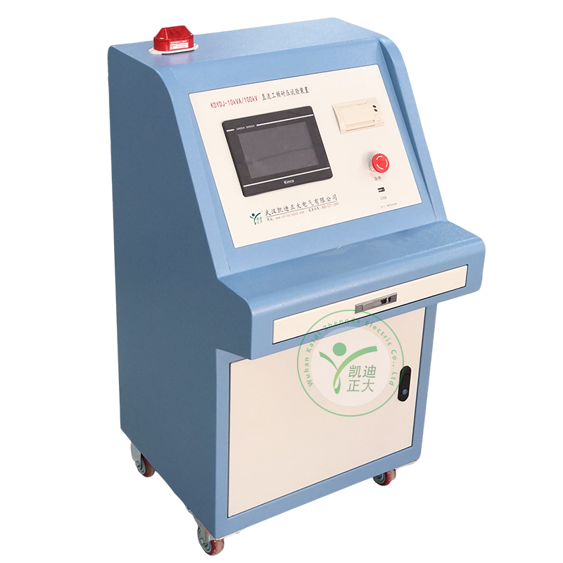 KDYDJ-10kVA/100kV 智能工頻耐壓試驗裝置是根據國家行業試驗標準而設計的試驗設備,其安全可靠、功能強、使用方便、維護簡單。主要用于對各種電器產品、電氣元件、絕緣材料等進行規定電壓下的絕緣強度試驗,以考核產品的絕緣水平,發現被試品的絕緣缺陷,衡量過電壓的能力。該系列產品是電力運行相關部門、電工電器制造企業、冶金、煤礦、電氣化鐵路相關部門、科研單位及高等院校等需要耐壓試驗設備的常用產品。