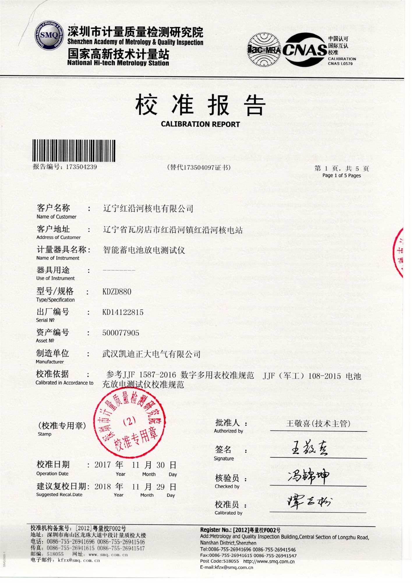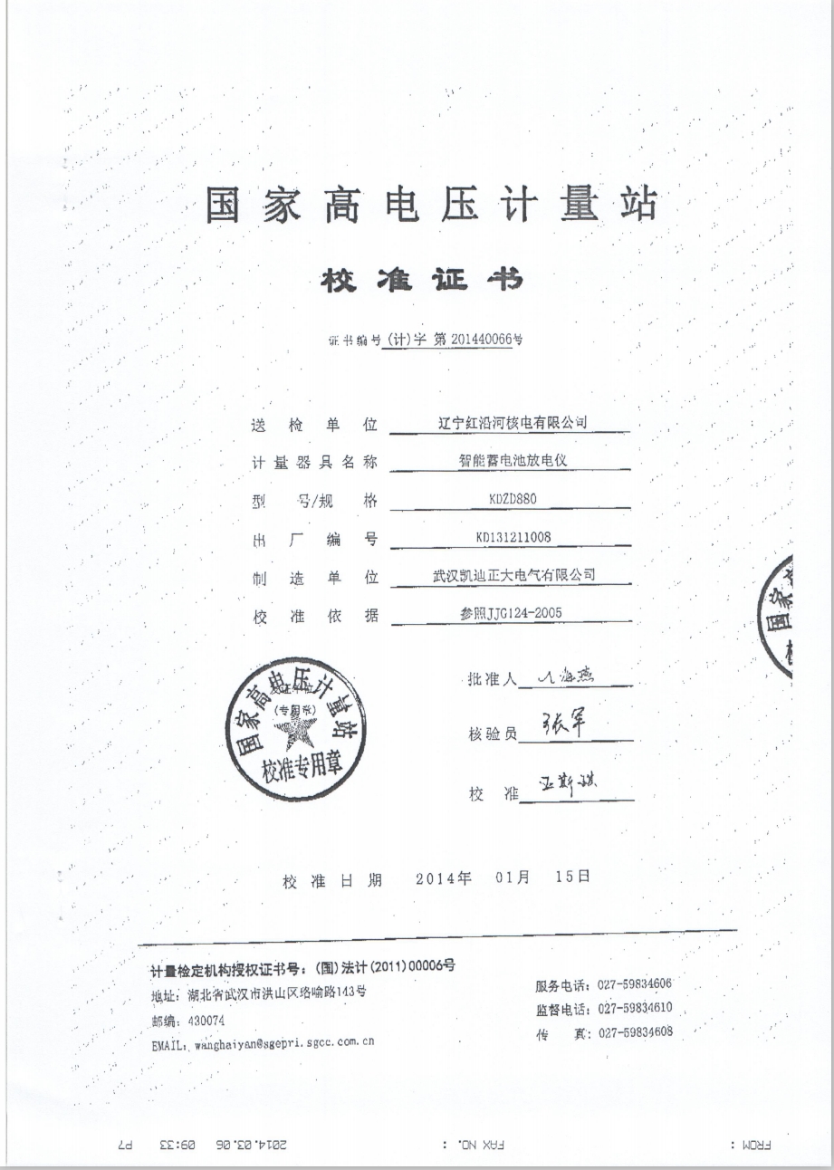 “KDZD886蓄電池充放電一體機”曾獲實用新型專利證書