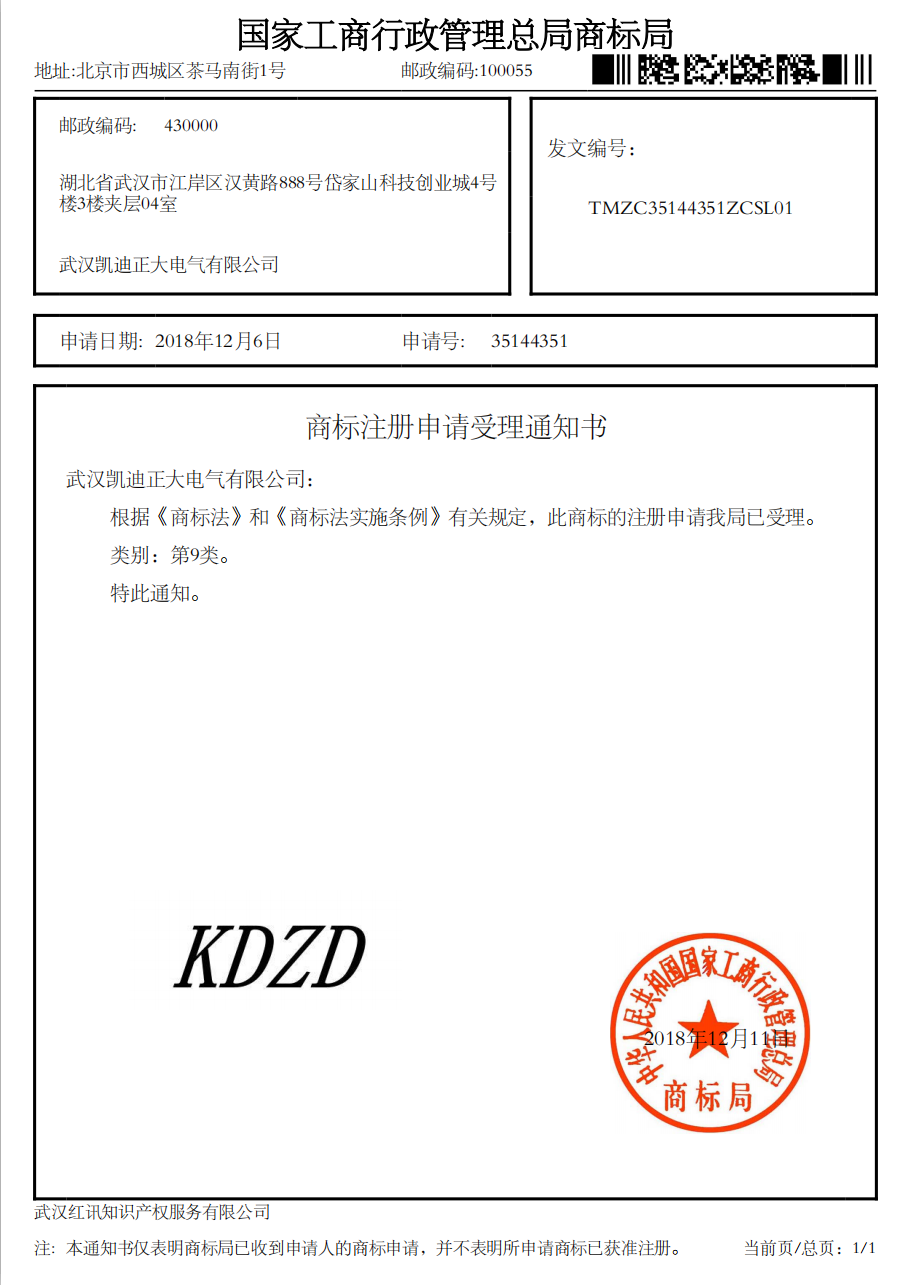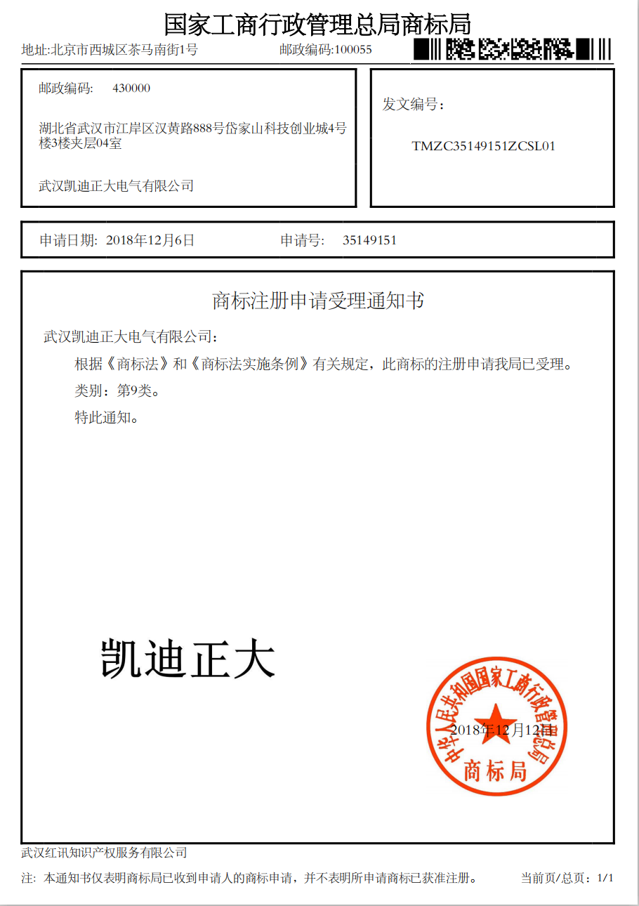 “凱迪正大LOGO”國家工商行政總局商標局受理書