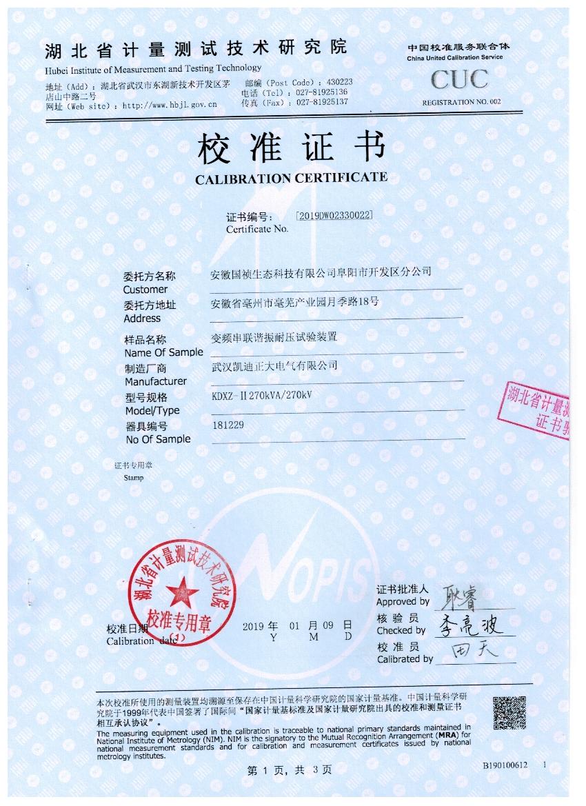 武漢市計量測試檢定(研究)所“強檢計量器具證”