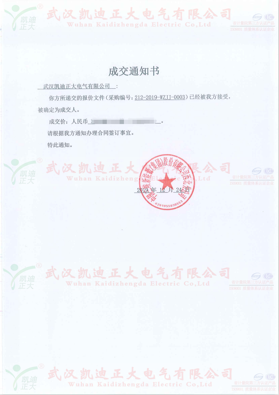 2020年上班的第一天收到中國(guó)三峽新能源(集團(tuán))股份有限公司西北分公司,采購(gòu)編號(hào):212-2019-WZJJ-0003的中標(biāo)通知書。友好的合作為我司2020年開啟了新的啟程,“玖”字開頭更是中華習(xí)俗千年的好兆頭,長(zhǎng)長(zhǎng)久久、紅紅火火。祝愿兩家公司的精誠(chéng)合作,為中國(guó)電力事業(yè)在新的一年打下堅(jiān)實(shí)的基礎(chǔ),在未來(lái)的一年里再創(chuàng)輝煌。