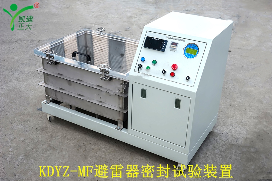 KDYZ-MF 氧化鋅避雷器密封試驗裝置簡要工作原理:具有空氣內腔的產品,在熱水中浸泡,空氣受熱膨脹,使其內壁壓強增大,一旦有密封缺陷,膨脹的空氣就會外溢,在水中產生連續性氣泡,并以此判定被試驗品是否漏氣。