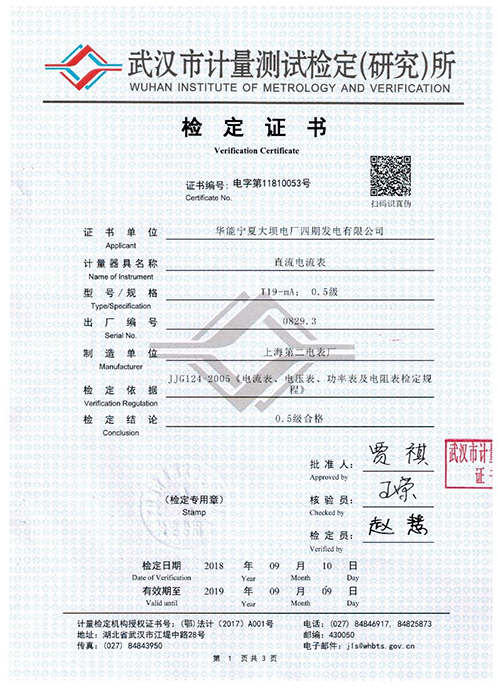 證書單位:華能寧夏大壩電廠四期發(fā)電有限公司