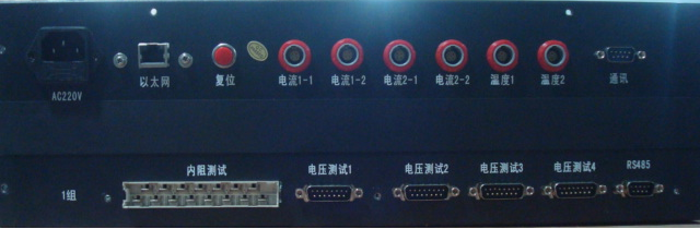 (4) 兩組電流測試接口 (5) 兩個溫度測試接口 (6) 通訊接口