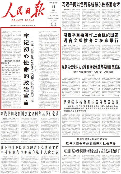 11月16日,隨著新華社發(fā)向全球的電波,《中共中央關于黨的百年奮斗重大成就和歷史經(jīng)驗的決議》對外公布。