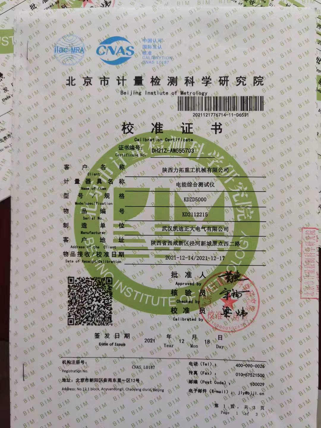 日前,陜西力拓重工機(jī)械有限公司采購(gòu)我公司一批電能綜合測(cè)試儀,經(jīng)北京市計(jì)量檢測(cè)科學(xué)研究院校準(zhǔn)和檢測(cè),產(chǎn)品幾乎符合國(guó)家標(biāo)準(zhǔn),最終合作圓滿成功。