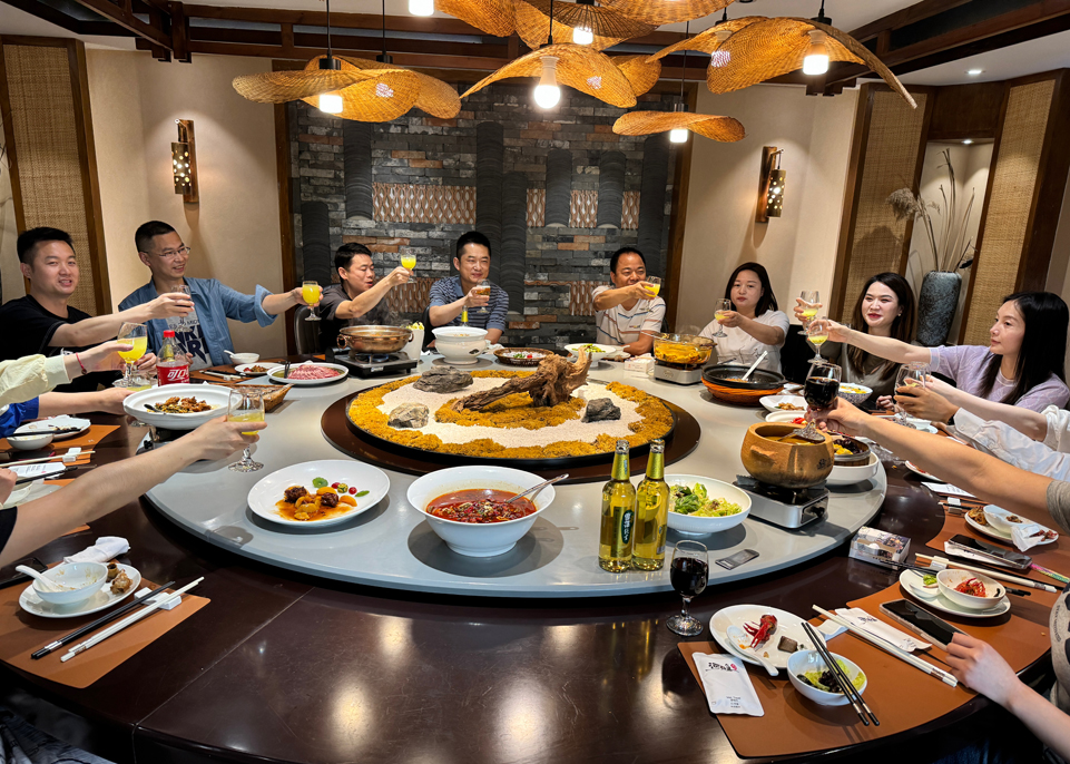 聚餐過程中,大家圍坐在一起,享受著豐盛的美食。桌上擺放著各式佳肴,色香味俱佳,讓人垂涎欲滴。公司準(zhǔn)備了精美的生日蛋糕,餐廳為壽星準(zhǔn)備了和寓意長壽的面條。蛋糕上點(diǎn)綴著鮮艷的水果,口感細(xì)膩,甜而不膩;面條則寓意著長壽和健康,寄托著公司對員工的美好祝愿。