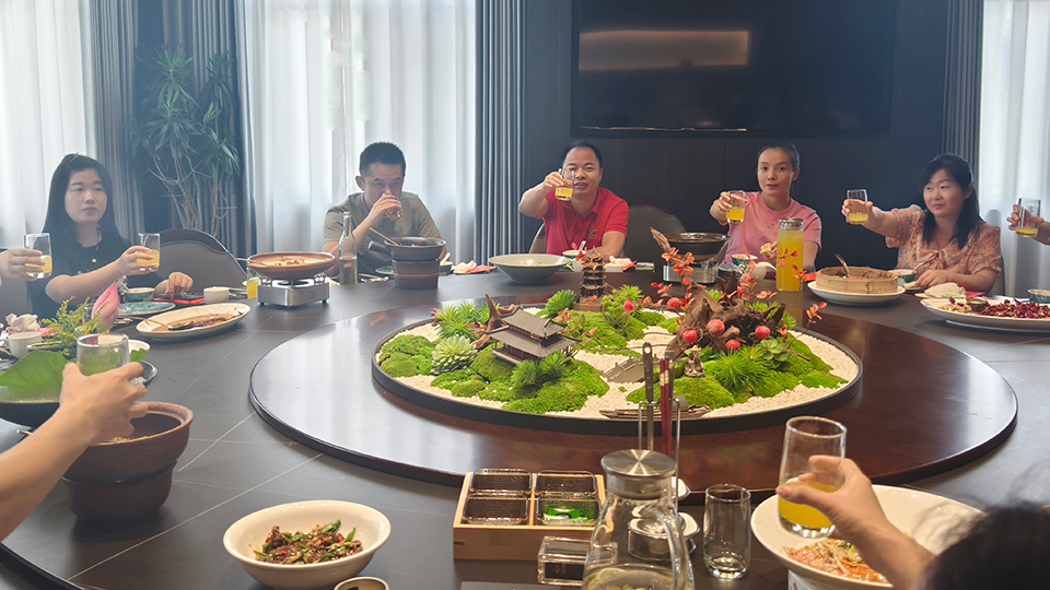 隨著聚餐的正式開始,公司領(lǐng)導(dǎo)向全體員工表達(dá)了節(jié)日的祝福。大家舉杯共祝,歡聲笑語充滿了整個(gè)餐廳。