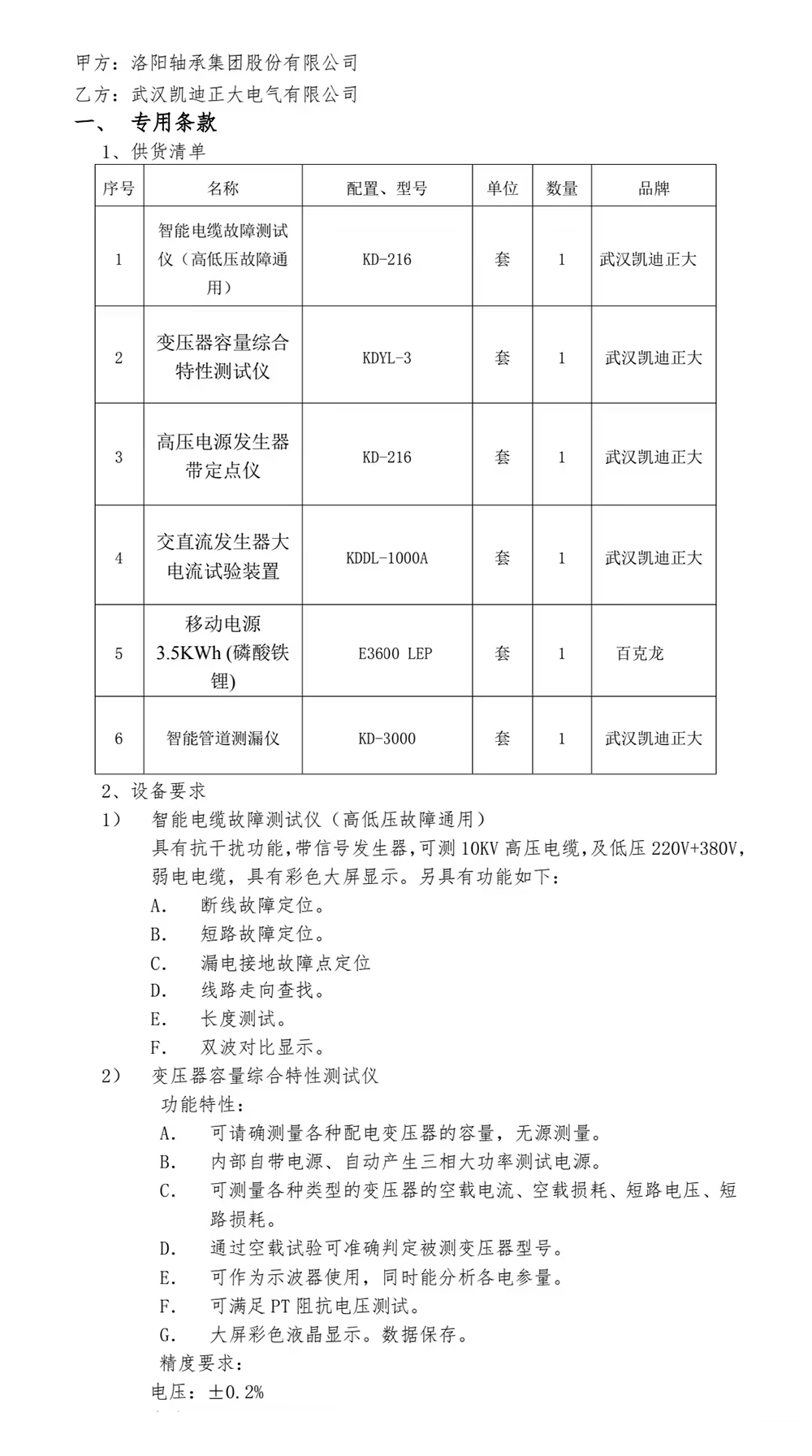 近日,洛陽軸承集團股份有限公司選擇與武漢凱迪正大電氣有限公司合作,批量采購了一系列電氣測試設(shè)備。此次采購的設(shè)備涵蓋了KD-216智能電纜故障測試儀、KDYL-3變壓器容量綜合特性測試儀、KD-216高壓電源發(fā)生器、KDDL-1000A交直流大電流試驗裝置以及KD-3000智能管道測漏儀。