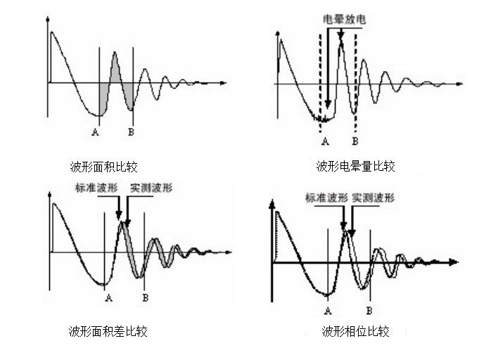 在指定區間內,檢測被測線圈波形中的電暈放電高頻成分,進行面積計算并與設定值比較。該方法專注于判斷電暈放電量,模擬傳統高頻濾波器檢測方式,適用于檢出絕緣層局部放電缺陷。